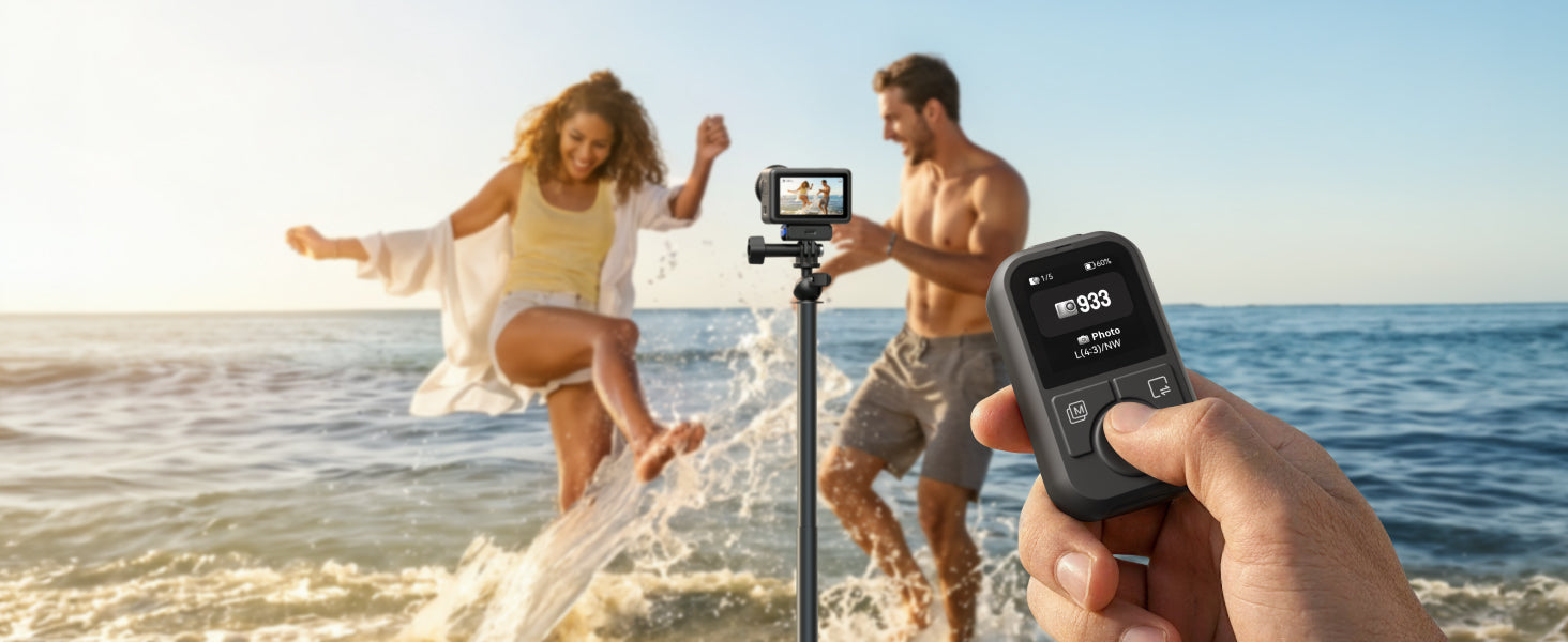 Real-Time Shooting Status: Track battery life, mode settings, and shooting duration with ease, right on the remote’s display.