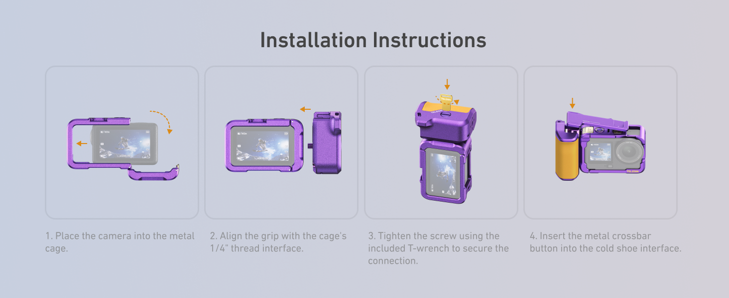 - Align the grip with the cage’s 1/4" thread interface.