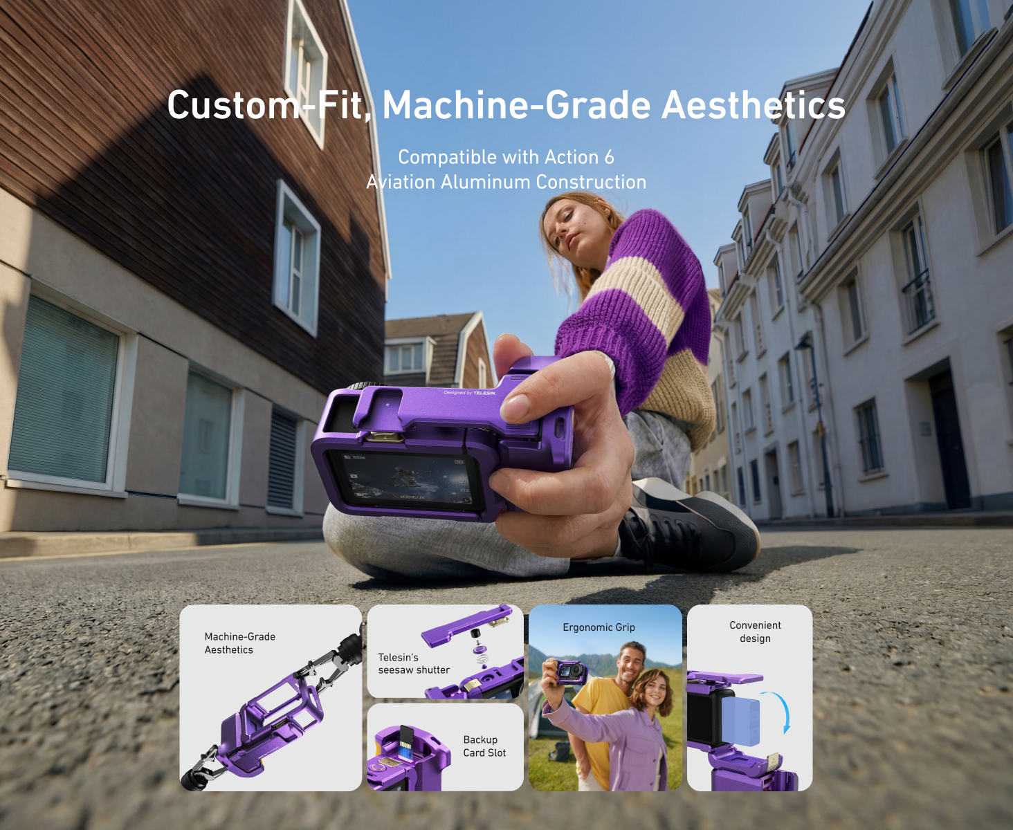 TELESIN has worked with thousands of action camera users and creators worldwide, focusing on real-world accessories for vlogging, travel and outdoor shooting. The StreetGrip Kit for Action 6 is built from that experience, with details shaped by how creators actually shoot in busy, changing environments.