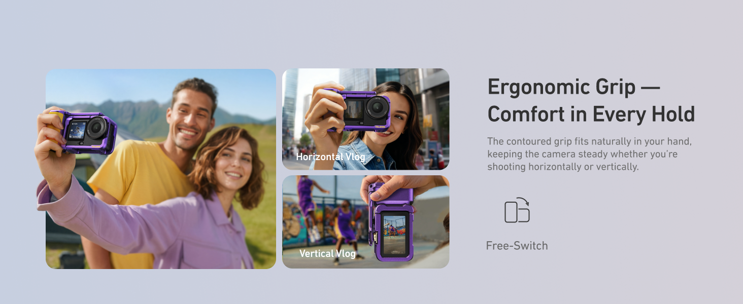 - Hold the grip naturally for classic horizontal vlogs