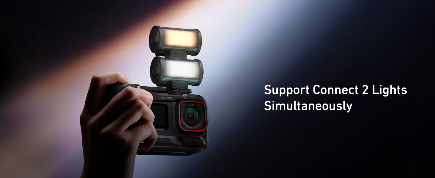 If you need more light, the TELESIN Bi-Color LED Video Light supports dual light connections, so you can link two lights for a more extensive, balanced lighting setup. This feature is ideal for multi-camera setups or when you need more control over your lighting.
