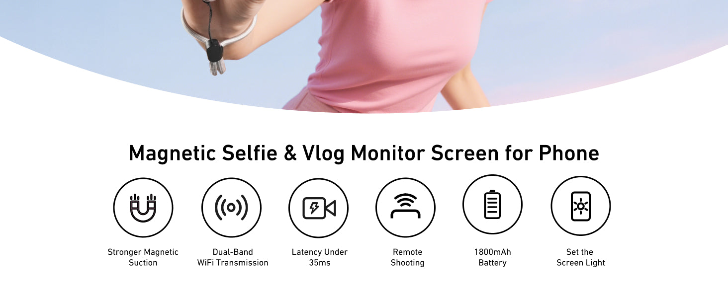 Magnetic Selfie & Vlog Monitor Screen for Phone | Wireless, Real-Time View & Lightweight Design | TELESIN