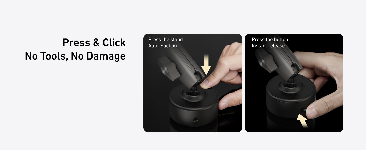 Removing the mount is just as easy. With the press of a button, you can quickly release the suction cup without leaving any marks or causing damage to the surface.