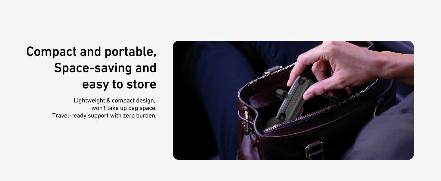This mount is designed to be portable and lightweight, making it easy to pack and carry with you on your travels. Its compact size ensures it won't take up too much space in your bag.