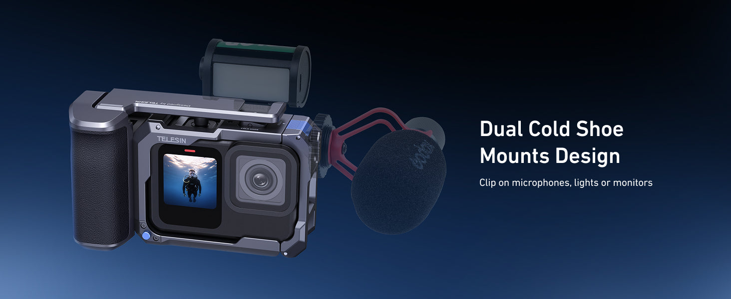 No need to compromise on functionality. The StreetGrip kit features dual cold shoe mounts, allowing you to attach microphones, lights, or monitors, elevating your GoPro setup for any shooting scenario. Whether you’re shooting vlogs in low light or need to ensure clear audio for your action-packed footage, this kit has you covered.