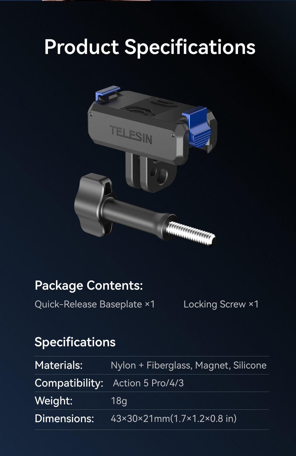 TELESIN Quick-Detach Mount For Action 5/4/3