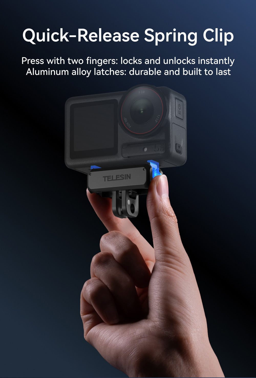 Designed for riders, skiers, vloggers and daily creators using DJI Osmo Action 5/4/3, this quick-detach mount lets you change angles and setups without slowing down.