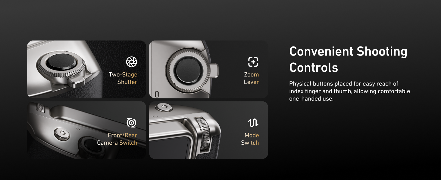 With the two-stage shutter, you’ll achieve perfect focus every time. Half-press to lock the focus, then press fully to capture the shot. Whether you’re photographing fast-moving action or capturing intricate details, this feature ensures that you never miss the perfect moment. Ideal for mobile photographers and content creators who need precise control over their shots.