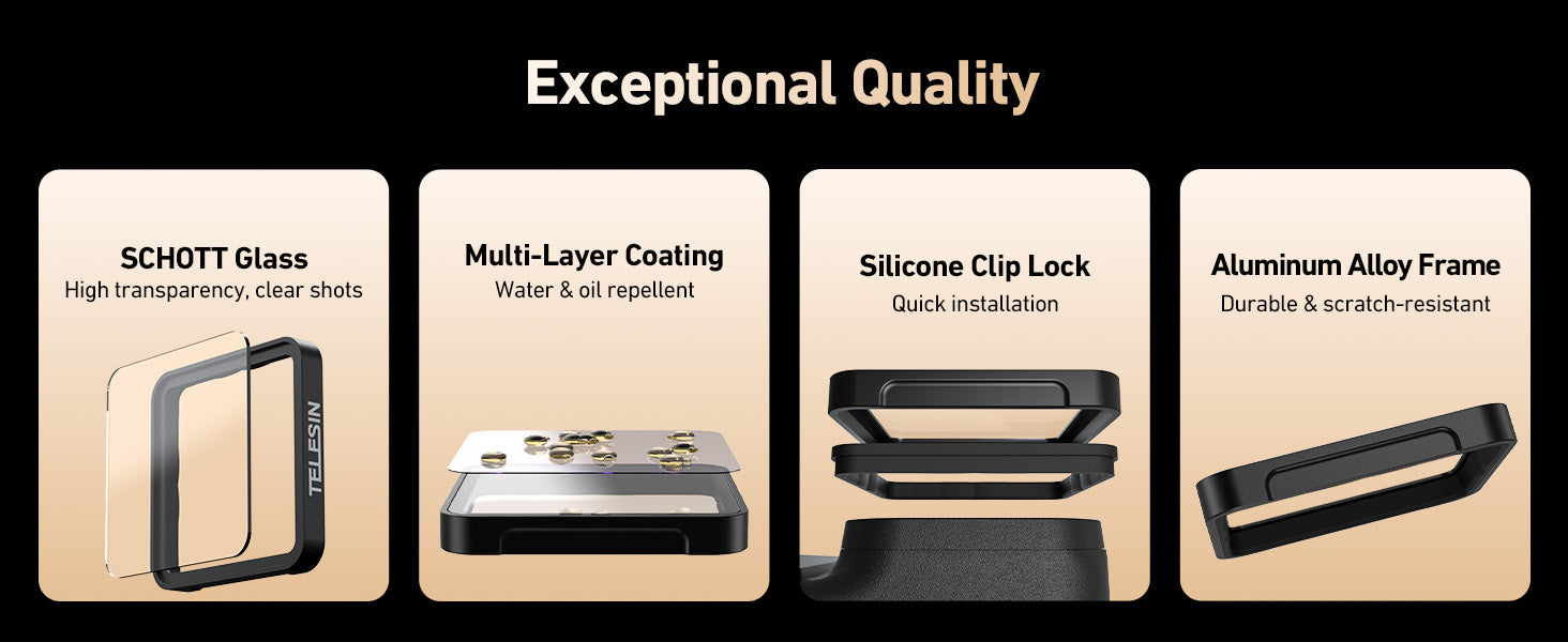 High-transparency optical glass delivers clear, detailed shots with minimal color shift, so your Ace Pro / Ace Pro 2 can capture every pixel it was designed for. -