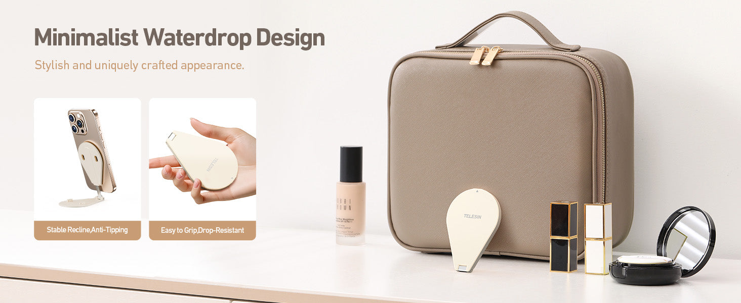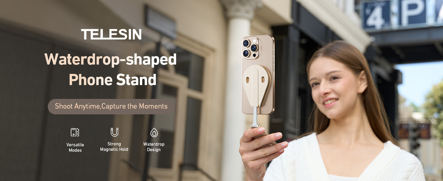 The TELESIN Waterdrop-shaped Phone Stand is a compact magnetic phone stand designed for people who use their phones all day—for creating, working, watching, and staying connected.