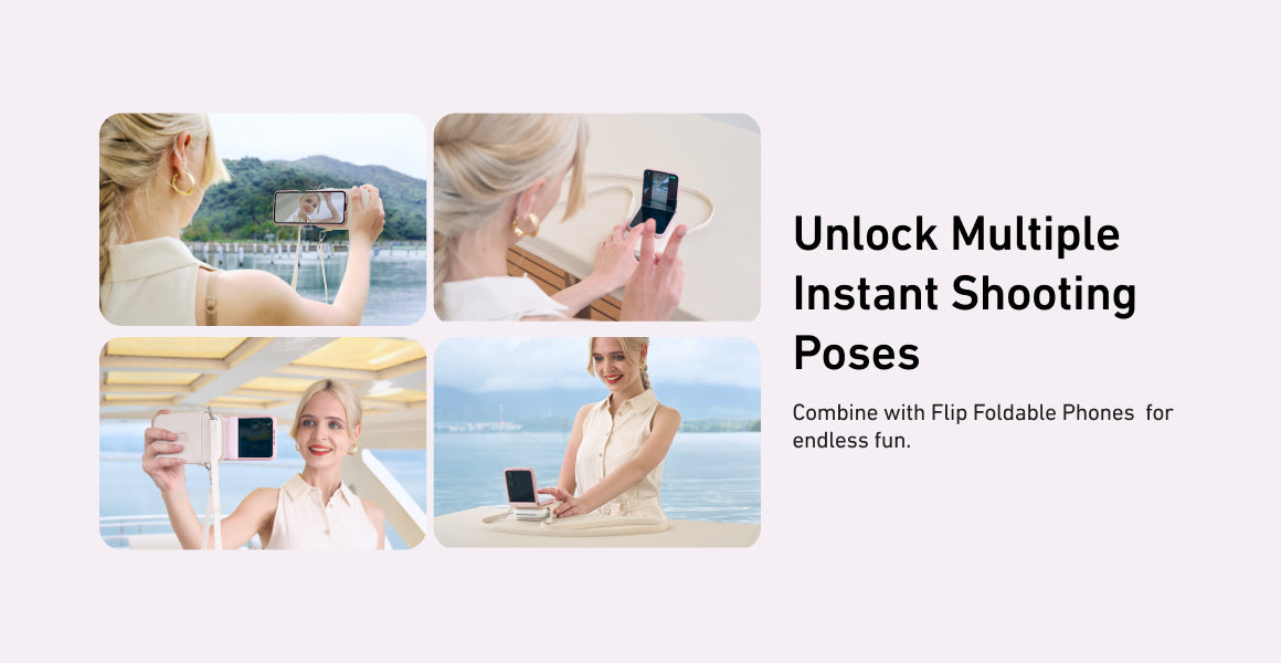 Magnetic combination with any Flip model, instantly transforms into a retro fashion camera.