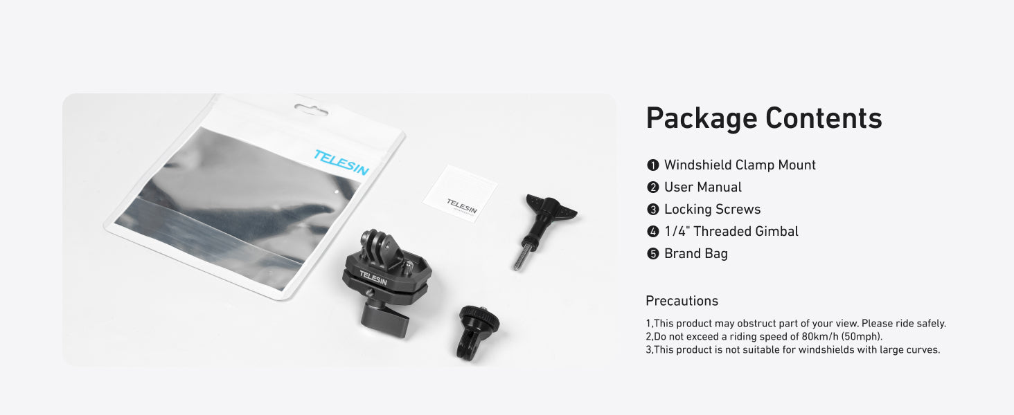 The TELESIN Windshield Clamp Mount is compatible with a wide range of action cameras, ensuring you can use your existing equipment. Whether you have a GoPro Hero series, Insta360, or any other compatible camera, this mount is a versatile solution for capturing your adventure.