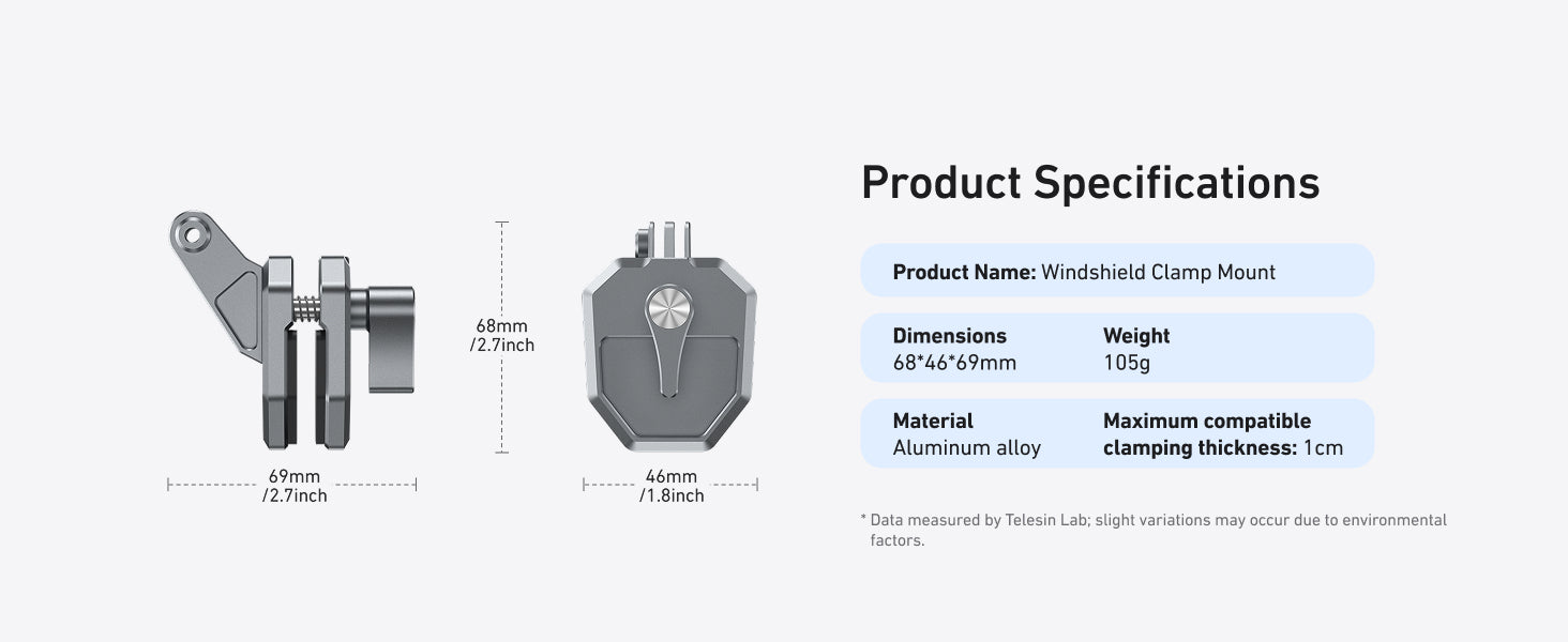 TELESIN is a trusted name in the action camera accessory industry, known for high-quality, durable products designed for creators, outdoor enthusiasts, and athletes worldwide. Our Windshield Clamp Mount is built for reliable performance, stability, and ease of use — helping you capture every moment with precision and confidence.