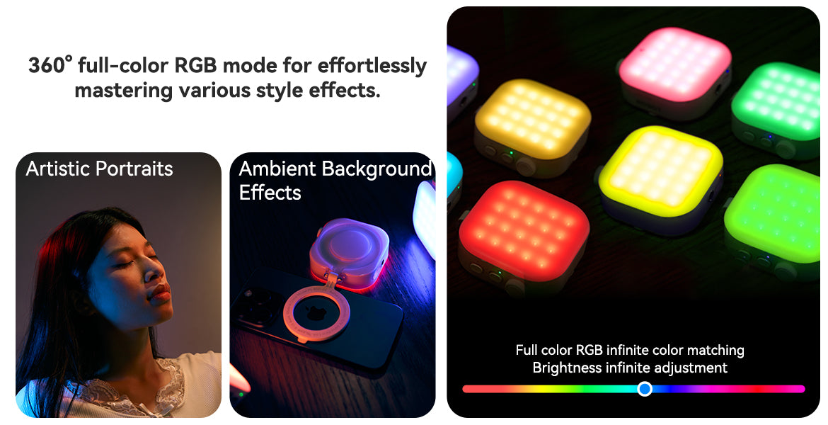 - Artistic Portraits & Ambient Effects: Use the RGB mode for unique, creative lighting and background effects to enhance your creativity.