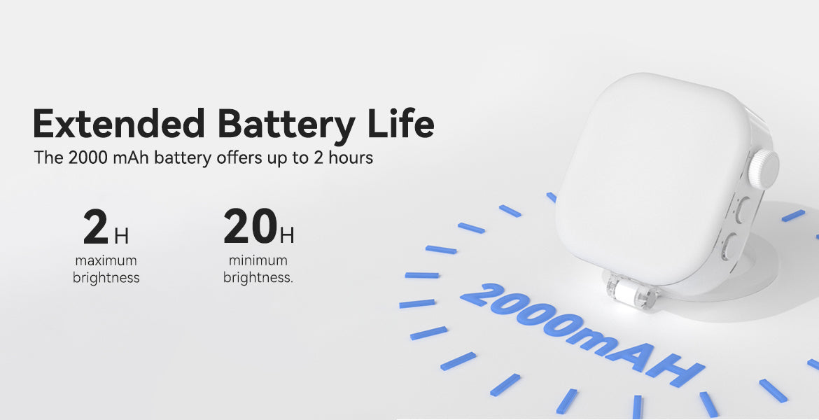 A: The light has a long-lasting battery, offering up to 2-4 hours of continuous use depending on the brightness setting. It can be easily recharged via USB, ensuring you're always ready for your next shoot.