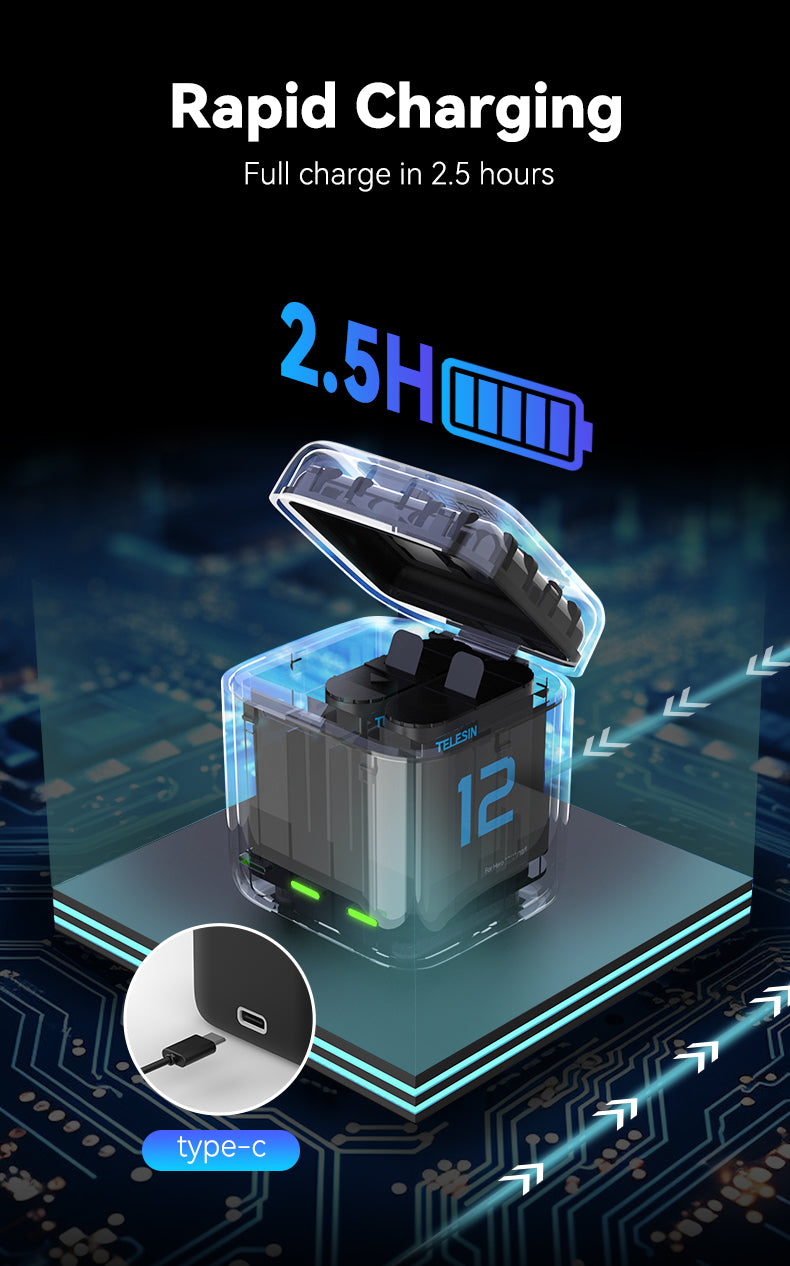 Charging Case with 2 Batteries for Hero 9-12