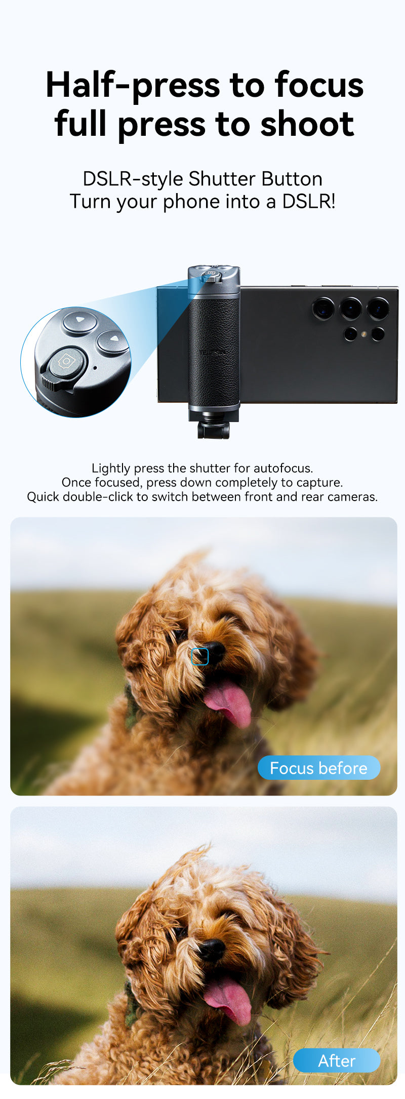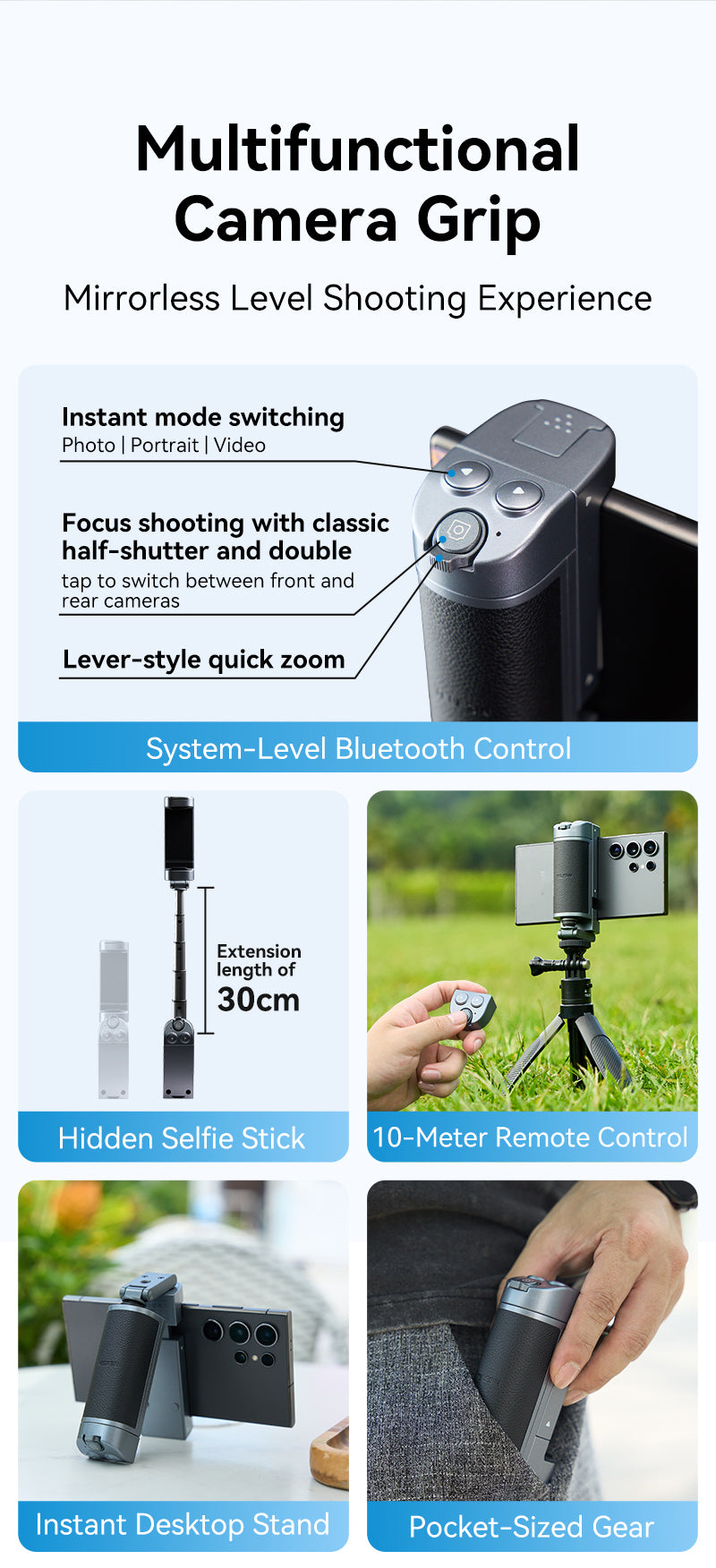 Multi-function Bluetooth makes it easy to achieve: shutter trigger, zoom, front and rear lens switching