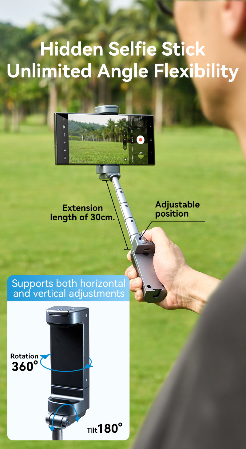Changeable form, multi-function design, folded state is a handle, bracket, unfolded to become a selfie stick
