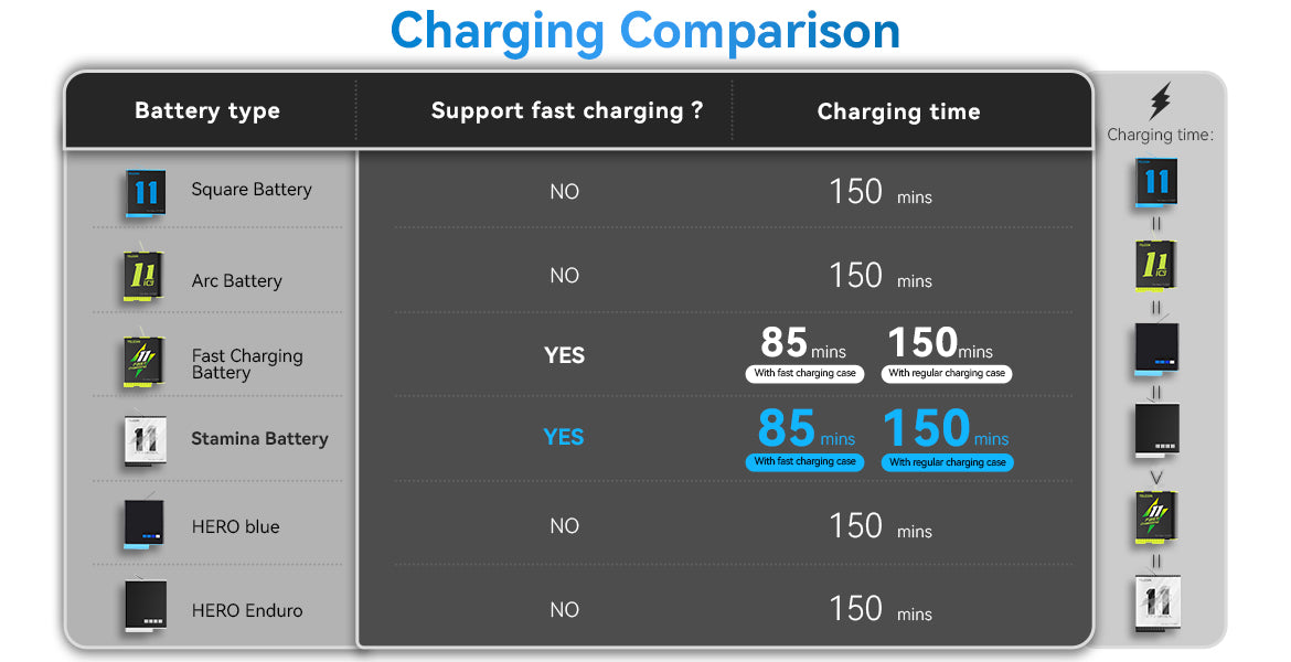 4. Dual fast charging methods, camera fast charging and TELESIN fast charging box fast charging, 30min charging 70%, 80min charging 100%.