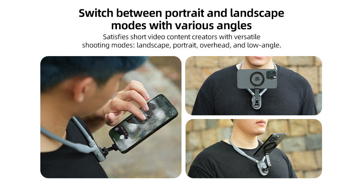Whether you’re filming for TikTok, YouTube, or Instagram Reels, this phone neck mount instantly adapts to your scene.