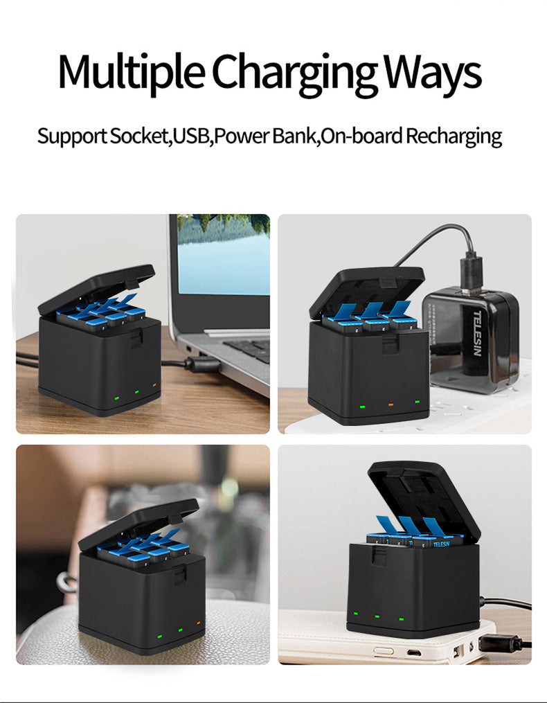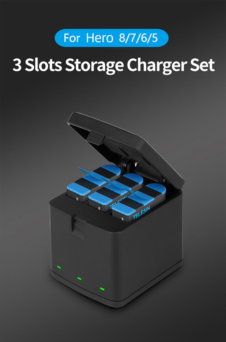 3 Slots LED Storage Charger Box for GoPro 5-8
