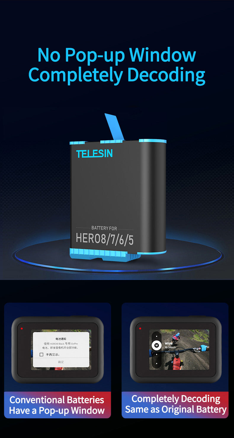4. Strong compatibility: works with TELESIN battery pack and Original GoPro battery pack.