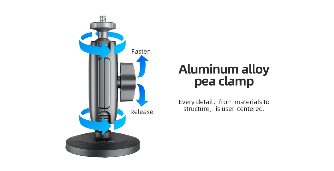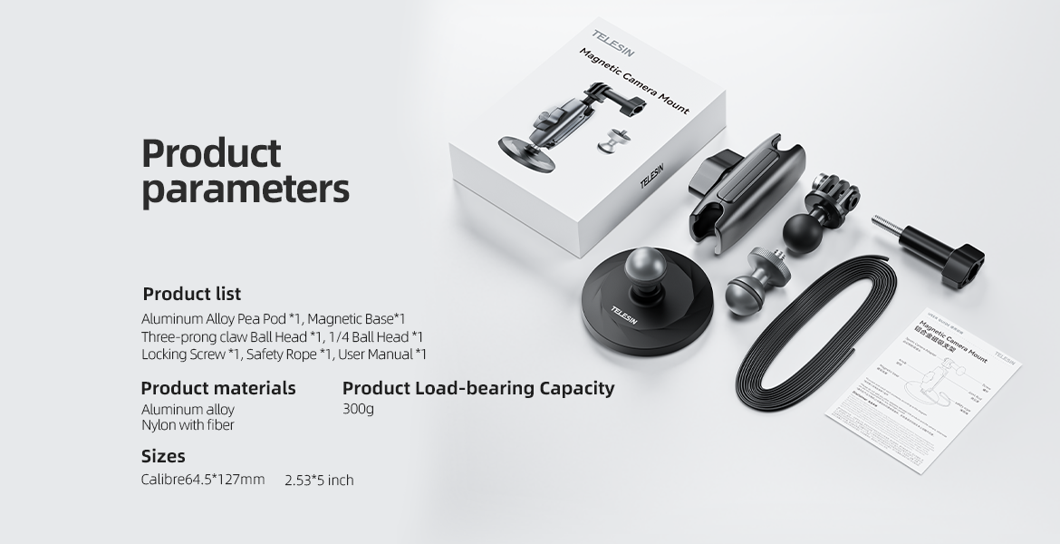 4. The accessories are equipped with a three-claw ball head and 1/4 stud ball head, suitable for more models.