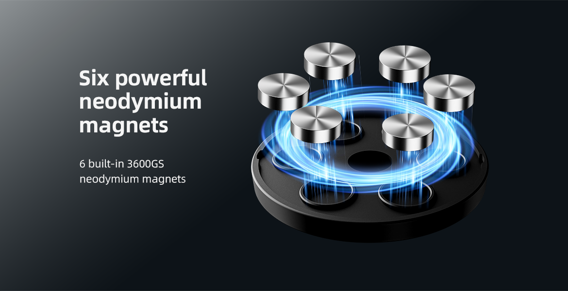 1. 6 powerful magnets distributed in an annular shape, which can be stably adsorbed on various iron surfaces;