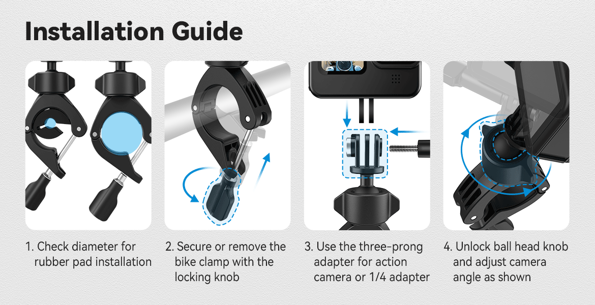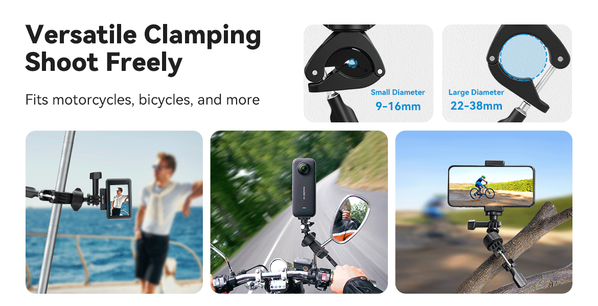 4. The clamping range is 9-16/22-38mm, which can be used to clamp bicycles, motorcycle rearview mirrors and other pipe diameters;