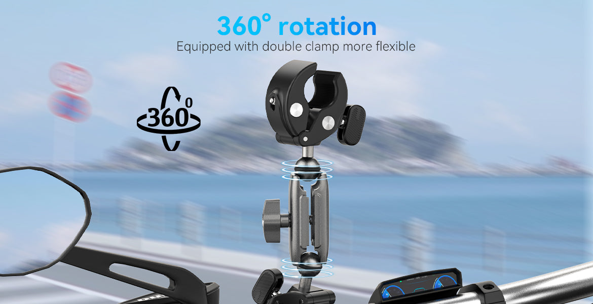Made of aluminum alloy, durable and with a 360° rotatable ball head structure, can be well connected to shooting equipment, especially the combination of selfie sticks and motorcycles.