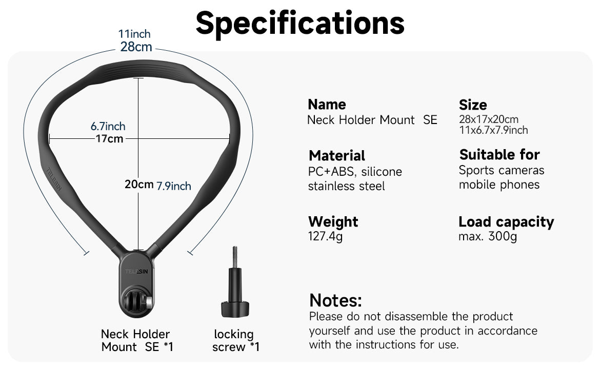 TELESIN Neck Holder Mount SE (No Magnetic) for Action Cameras/ Phones