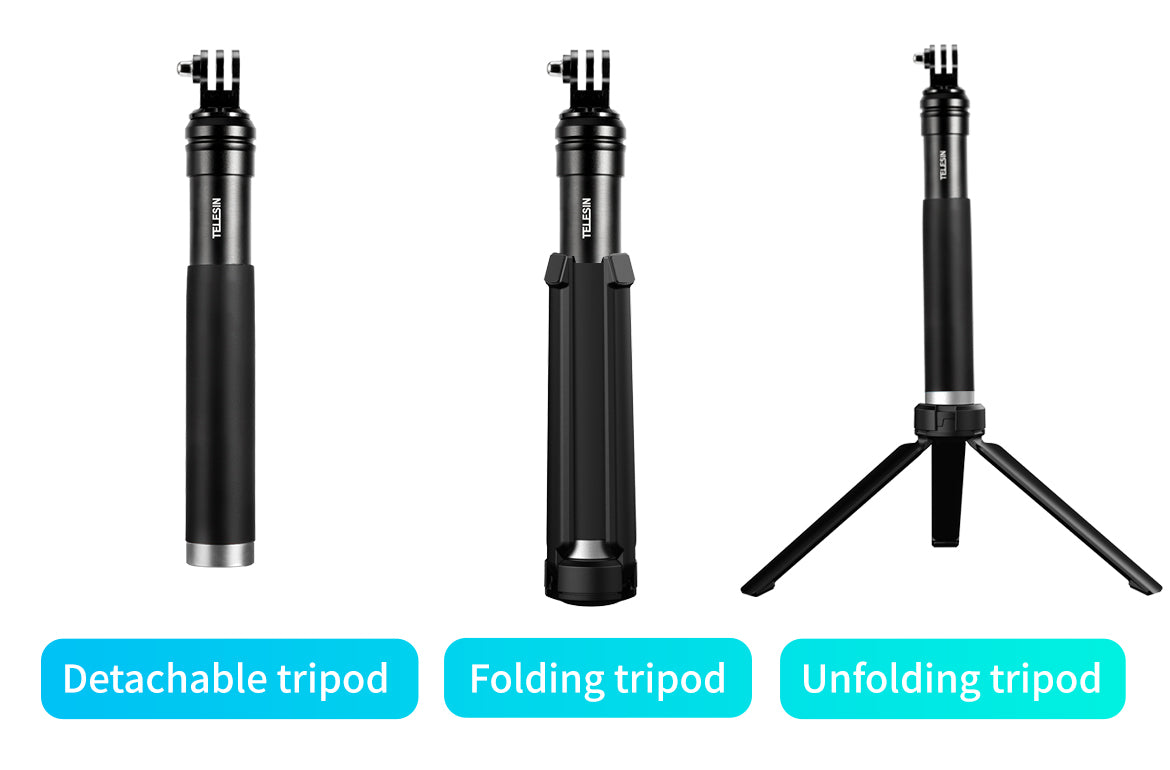 A: Yes! The TELESIN tripod has several features designed with creators in mind, including a detachable design for handheld shots, adjustable height, and a foldable structure that makes it easy to take on the go. Whether you're shooting on location or at home, this tripod offers flexibility for all your creative needs.
