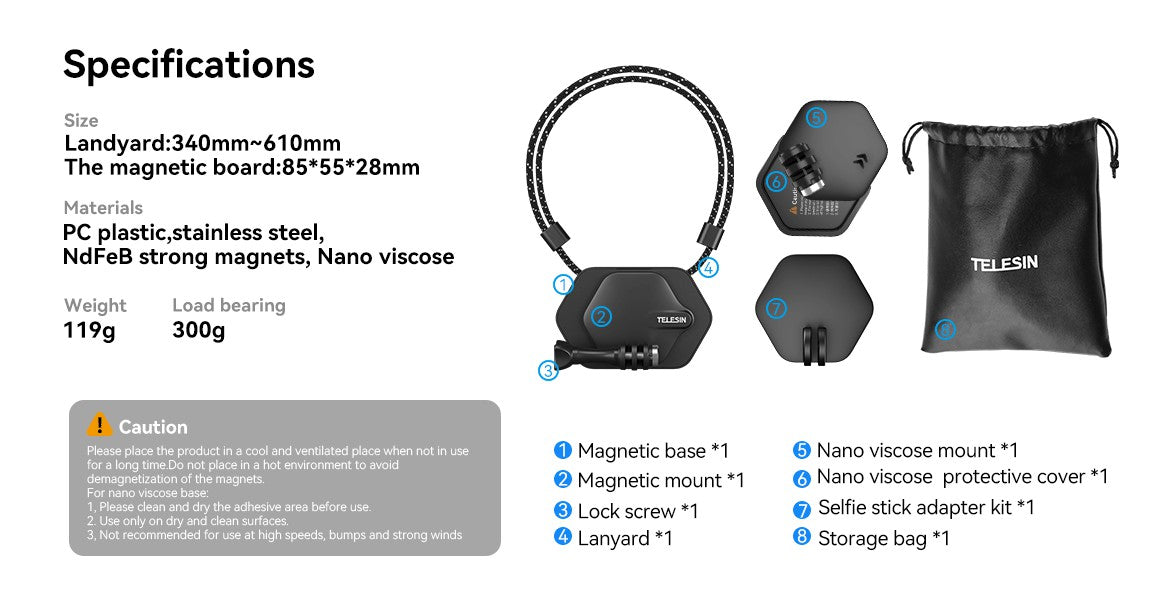 TELESIN Magnetic Bracket Expansion Set (Neck Mount/Quick Release)