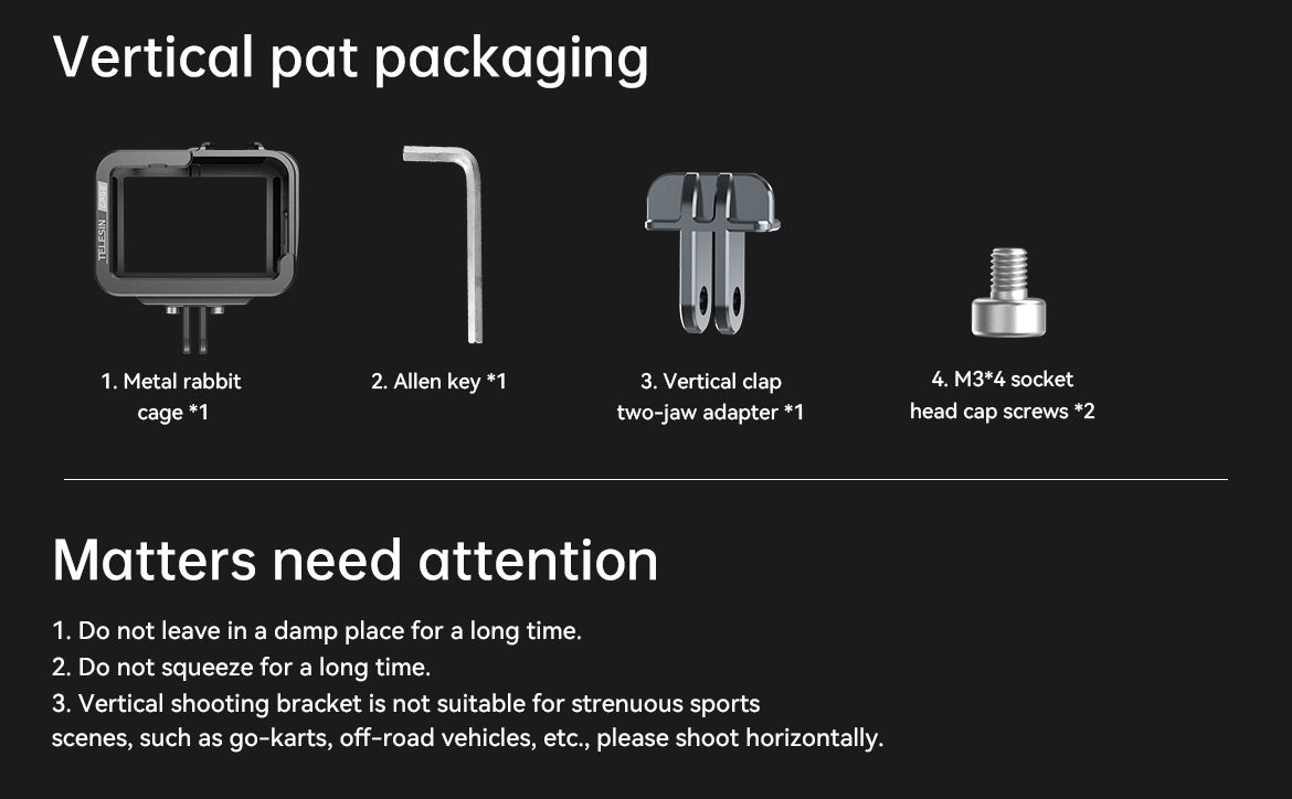 TELESIN Metal Cage Vertical Frame for GoPro 12/11/10/9