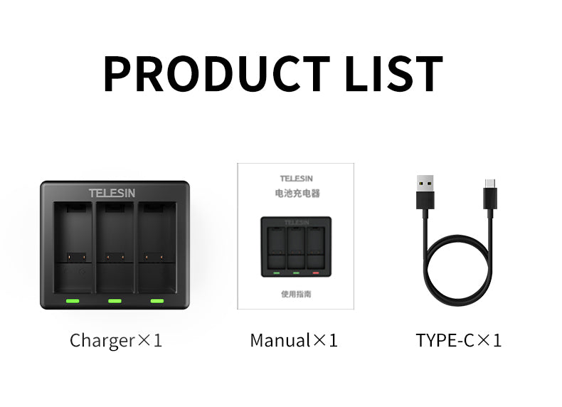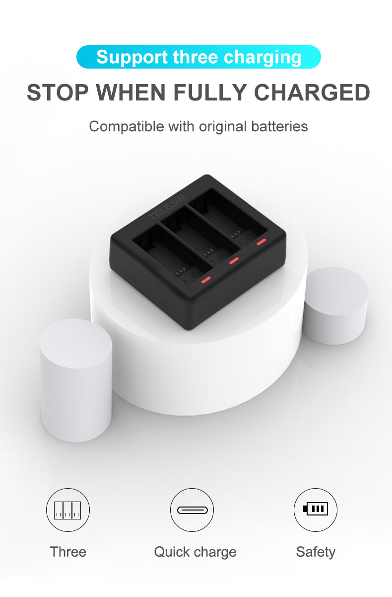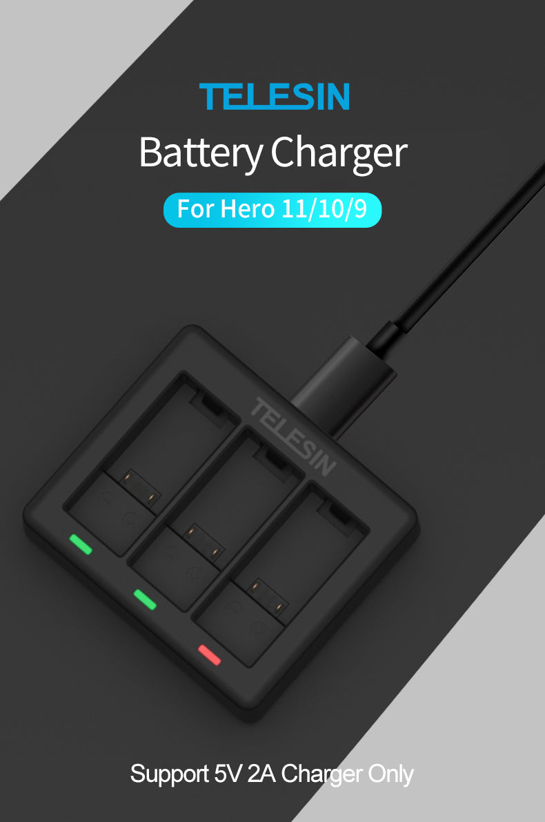 TELESIN 3 Slots Charger for GoPro Hero 9/10/11/12