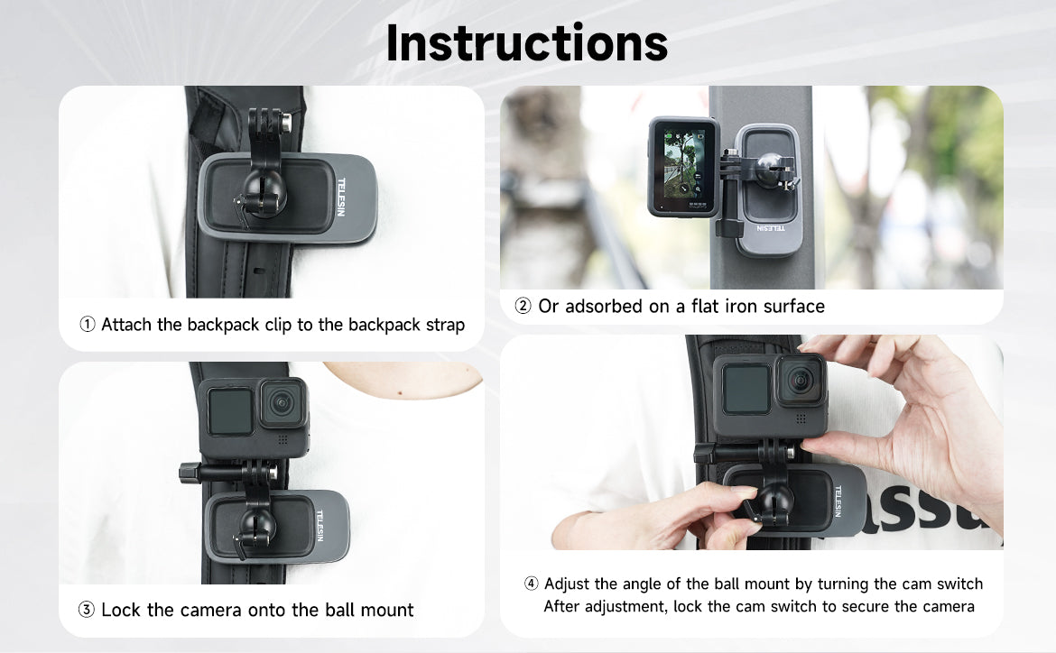 TELESIN Upgraded Magnetic Universal Backpack Clip