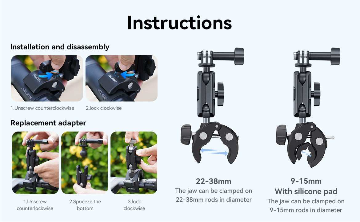 TELESIN Plastic Universal Handlebar Mount Tube Clamp