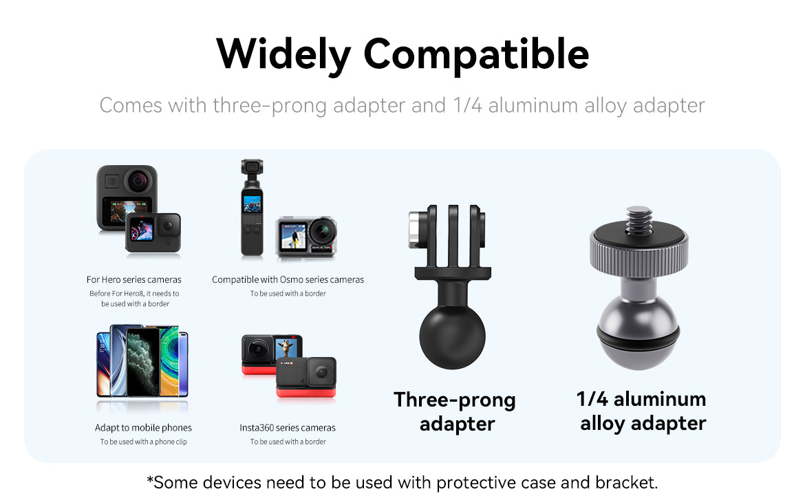 1. 360-degree rotating design, double ball head, more flexible, can meet any camera position.