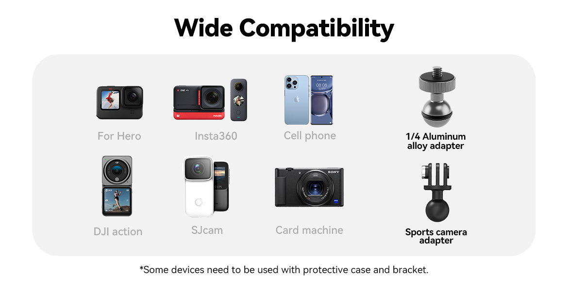 6. Support mounting GoPro, DJI Action, Insta360 one X1/ X2/ RS, SJcam and etc.