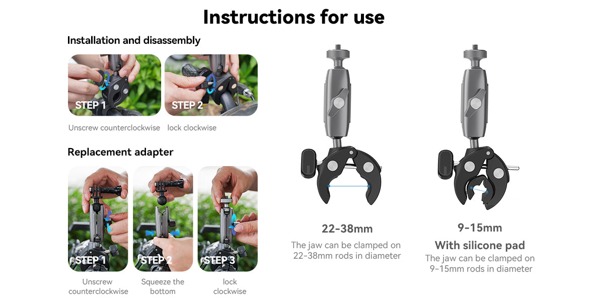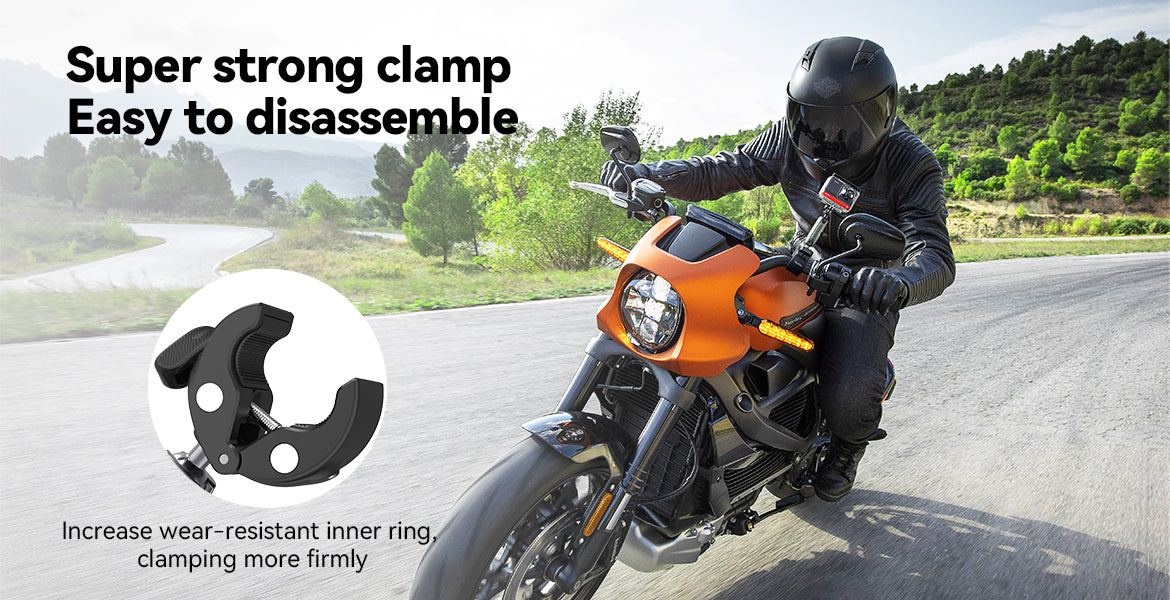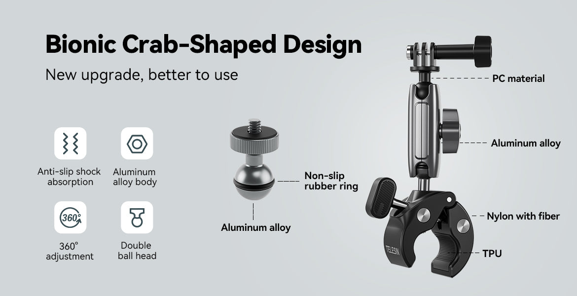 2. Aluminum alloy ball head, plus anti-slip rubber ring, stable and firm. Compared with the plastic ball head, it is sturdy and durable, effectively reducing the shooting vibration during riding and providing more stable support.