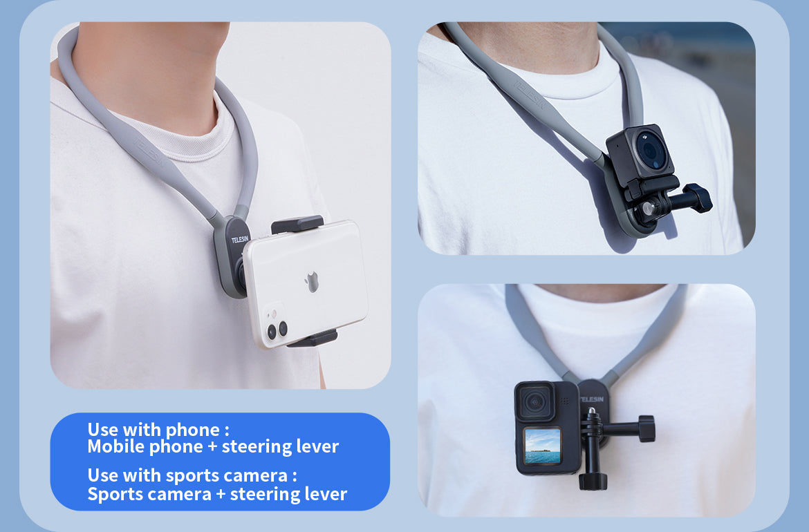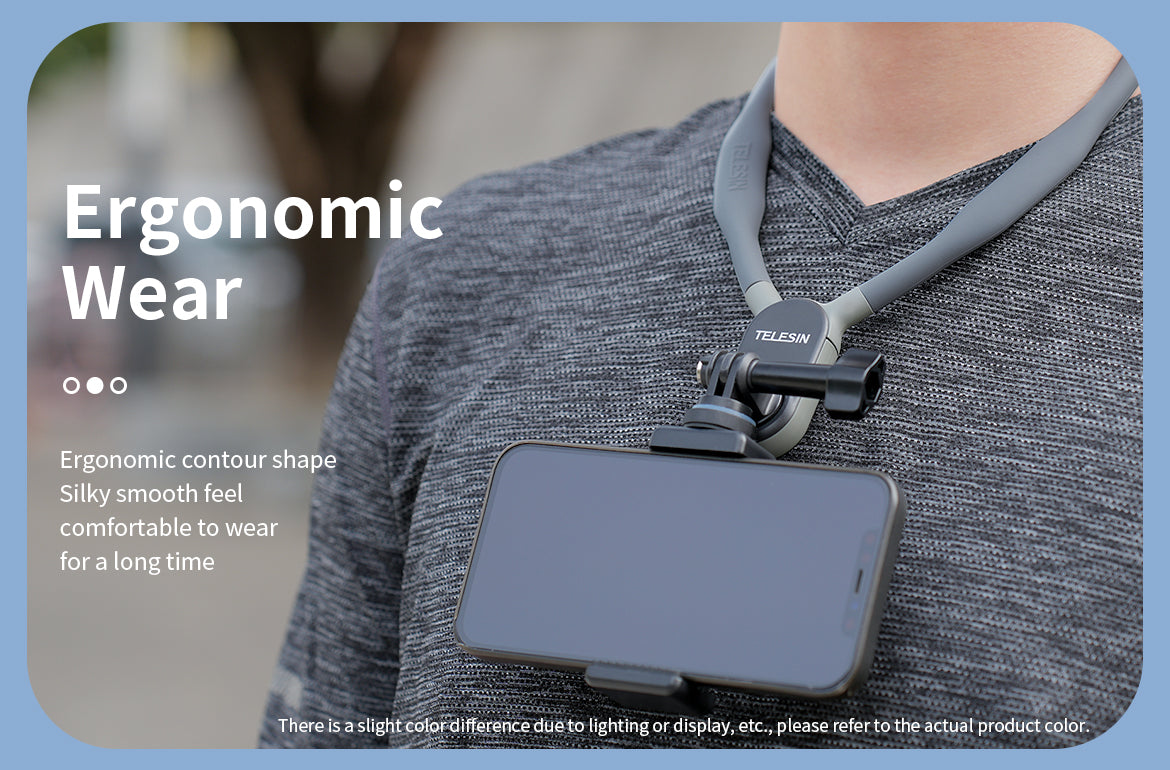 Capture every thrilling moment with ease. Whether you're skiing down a mountain, vlogging on your travels, or running through an intense race, the TELESIN neck phone holder is designed to keep your camera secure and your hands free—so you can focus on the action. With an ergonomic design, durable construction, and effortless installation, this mount is perfect for vloggers, athletes, and outdoor enthusiasts who demand comfort and stability.