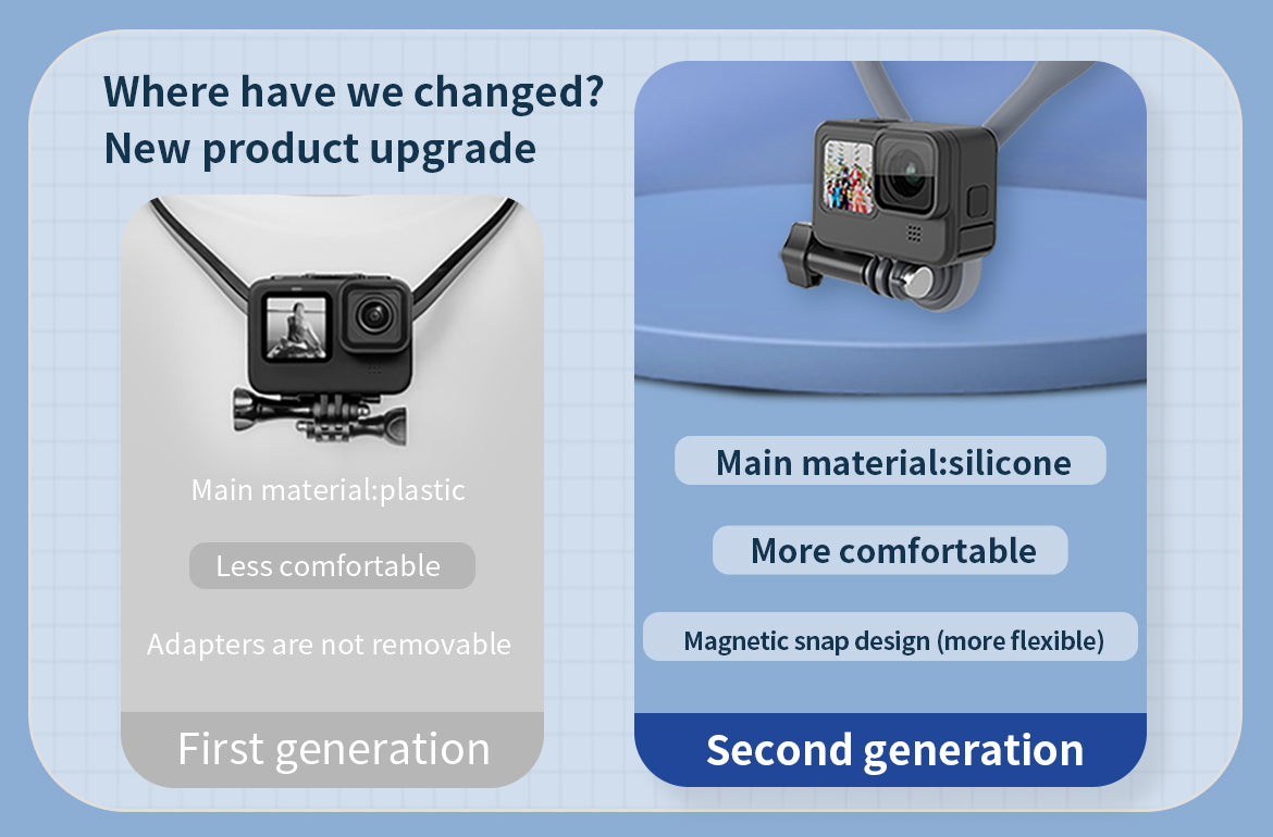 A4: Simply attach your camera to the magnetic rotating interface, place the flexible collar around your neck, and adjust it for a comfortable, secure fit.