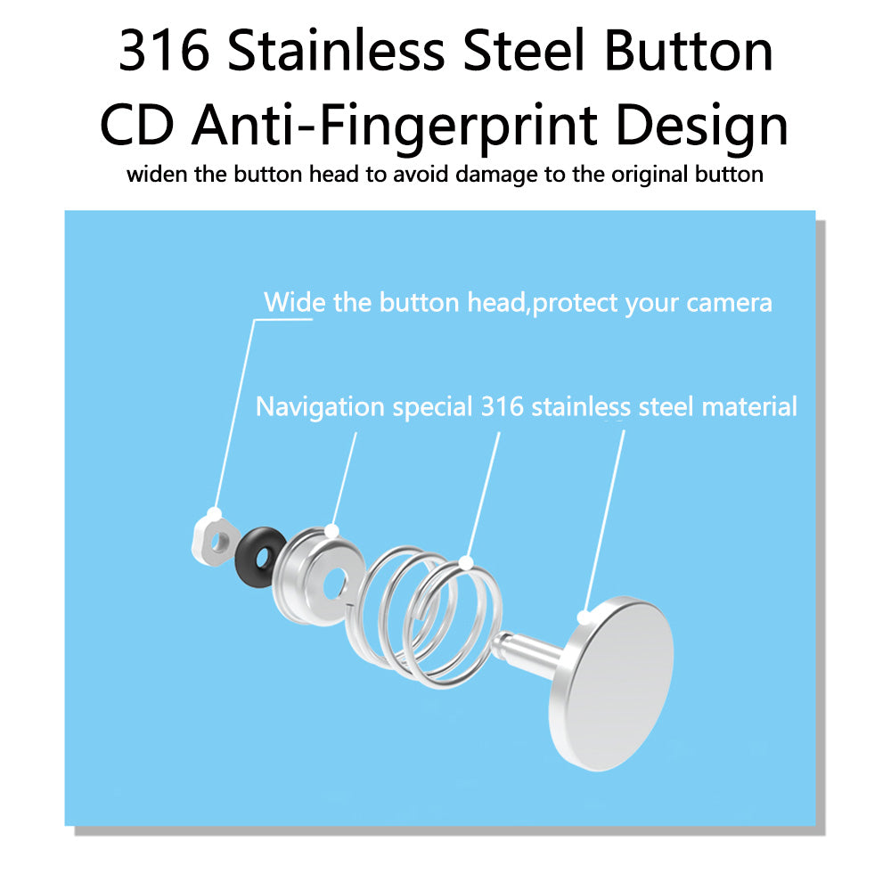 6. CD Anti-Fingerprint Design: Navigation special 316 stainless steel material, wide the button head, protect your camera.